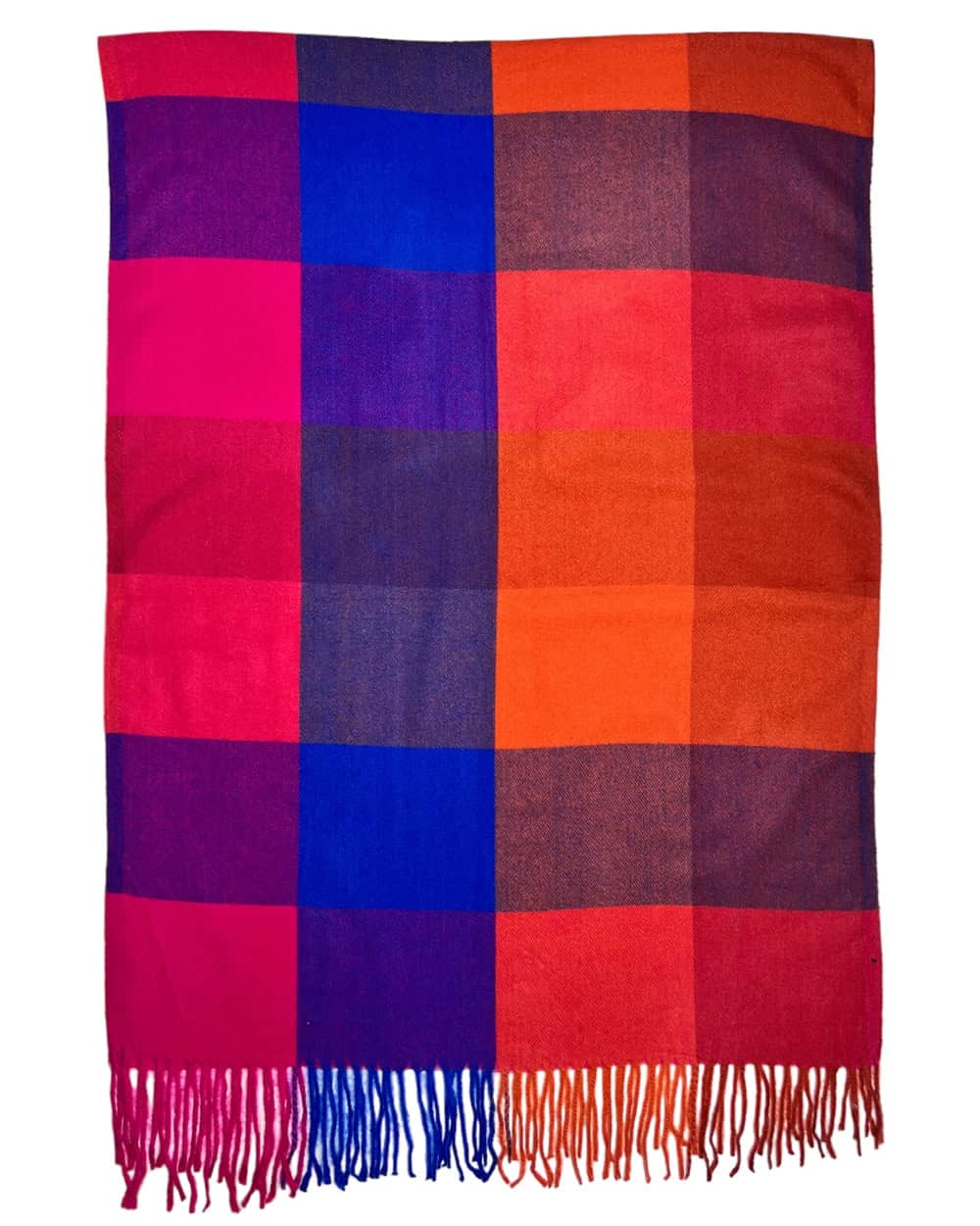 Smukt ternet halstørklæde i rødlige og blålige farver. Et virkelig lækkert blødt og behageligt halstørklæde.