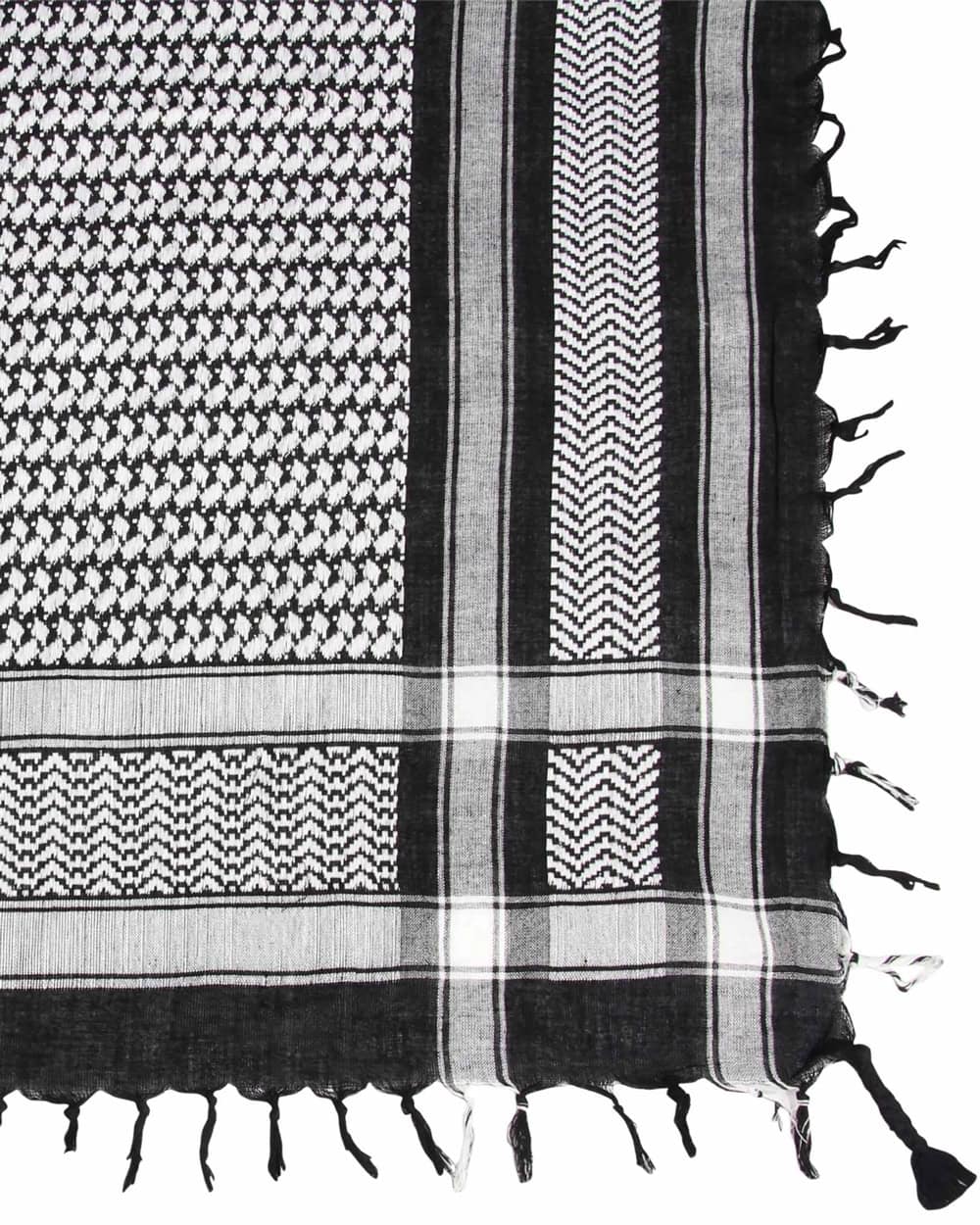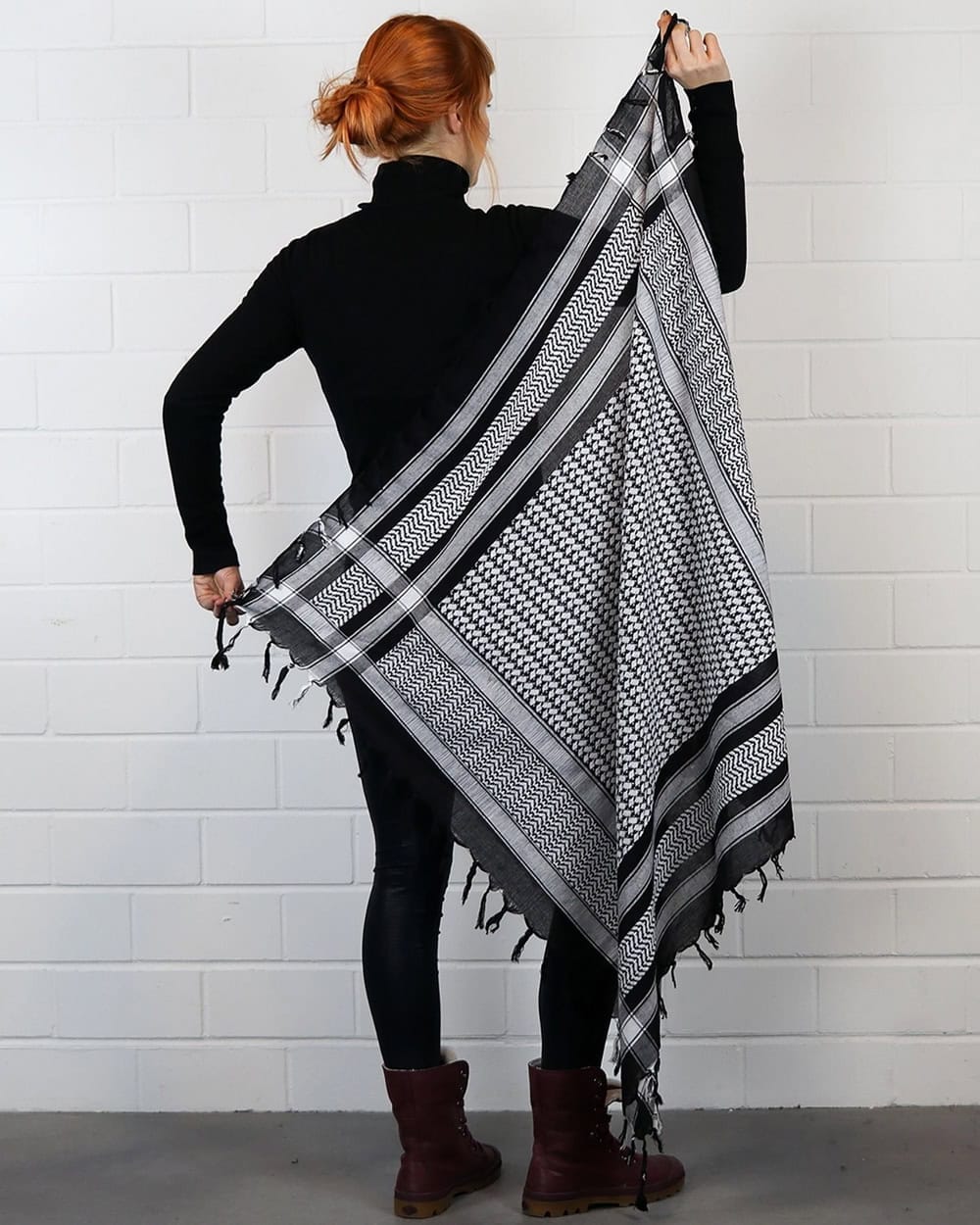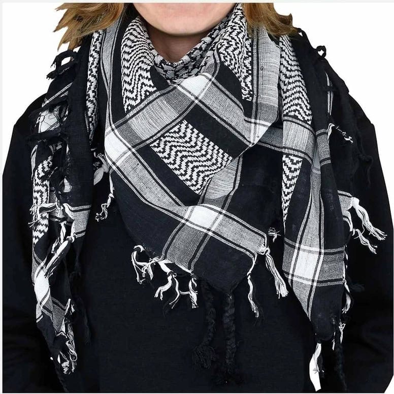 Super cool sort hvidt partisaner/palæstinenser tørklæde. Et virkelig lækkert blødt tørklæde. Brug det til at varme halsen eller brug det som et pyntetørklæde til kjolen, blusen eller jakken uden en krave eller brug det omkring håret. Uanset hvordan du bruger det, vil du se cool ud.